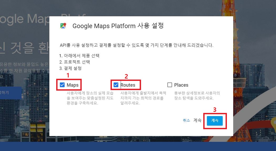 3. 구글 지도를 사용할 새 프로젝트 생성 후 프로젝트명 입력