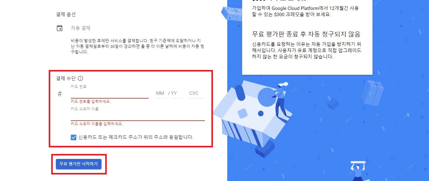 7. 마지막에 결제 수단 입력 후 무료 평가판 시작하기 선택